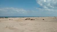 Nos sentamos contemplando las dunas y tomamos unos mates, al poco tiempo siento que mi novia me llama a los gritos, y lo que pasó fue un regalo hermoso…aprox 15 caballos salvajes habían entrado a través de la parte forestada de la reserva a la playa, los teníamos a metros nuestros!! Inmediatamente interprete esto como un regalo de la naturaleza. Sin dudas. Se pueden imaginar lo fascinados que estábamos…